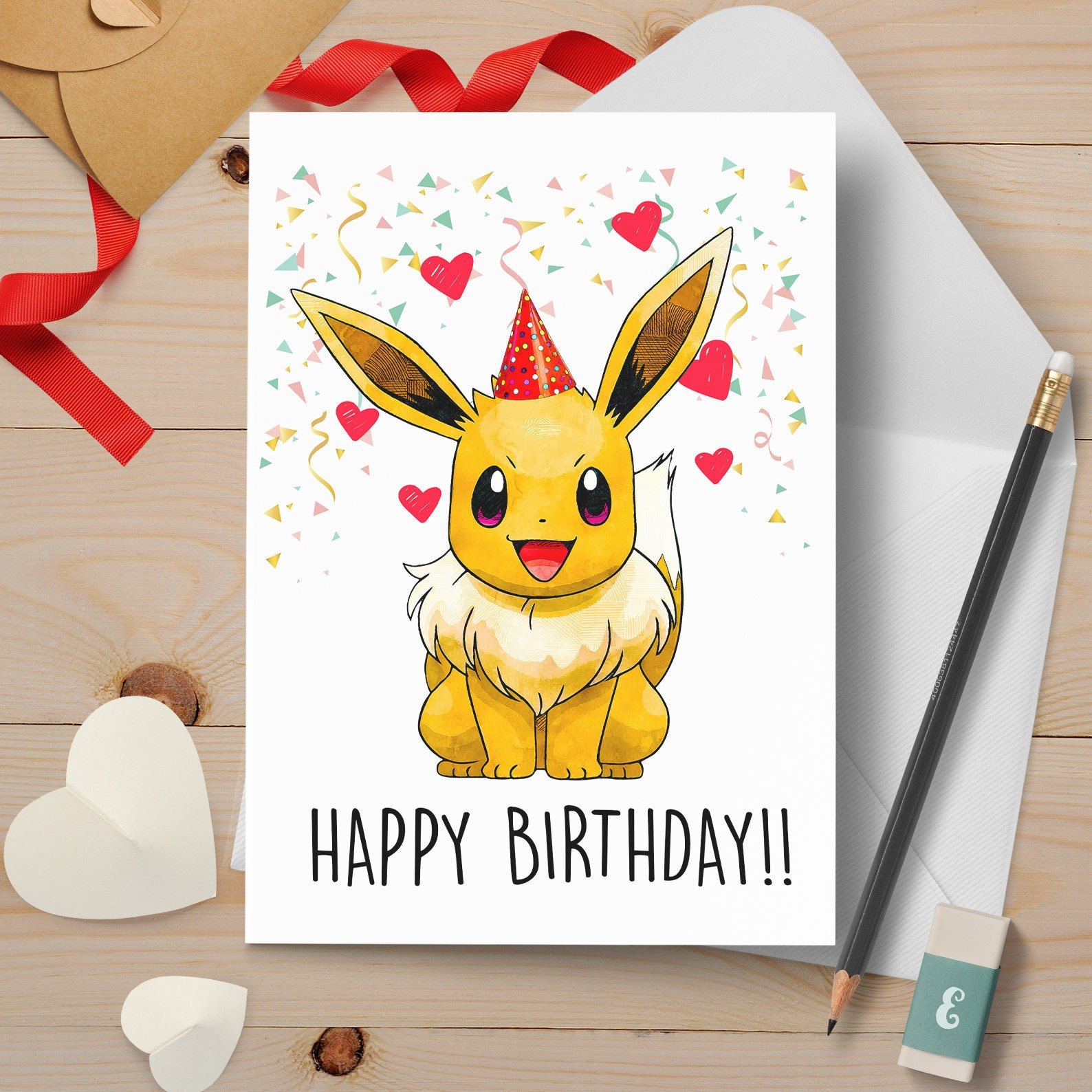 Pikachu Eevee Birthday Card , Pokemon Inspired Birthday Card, Customizable, Pokemon Card, Funny Birthday Card, Pikachu, Eevee, Art Print